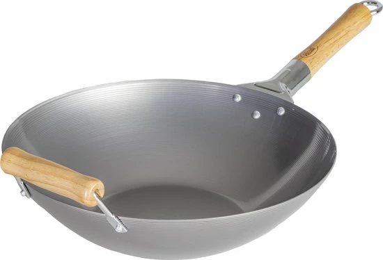 Ben je gek op een heerlijk wokgerechtje? Dan mag de Blackwell wokpan Voccelli 35 cm niet ontbreken in jouw keuken! De wokpan heeft een diameter van 35 cm en een hoogte van 10 cm. De pan is gemaakt van carbon staal en heeft een houten handgreep. Let op! Als je de pan voor het eerst gebruikt moet je eerst de beschermlaag aan de binnen- en buitenzijde worden verwijderen. Hoe je dit doet lees je terug in de gebruiksaanwijzing die te vinden is in de pan. De pan is niet vaatwasserbestendig, je kunt de pan eenvoudig schoonmaken met alleen warm water. Bij zorgvuldig gebruik en onderhoud kan je jarenlang plezier hebben van de Blackwell Voccelli wokpan 35 cm!