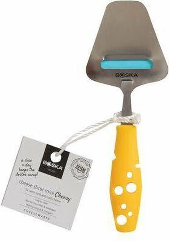 De Kaasschaaf Mini Cheesy is een zeer originele kaasschaaf. Deze handzame alleskunner met opvallend gatenkaasmotief, schaaft als de beste. Dankzij zβn compacte formaat neemt iedere kaasfanaat deze kaasschaaf overal mee naartoe. Waar je ook bent, je schaaft de meest heerlijke plakken kaas. Deze schaaf van BOSKA is klein van formaat, maar groots in prestaties.