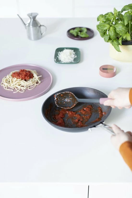 Haal het onderste uit de pan met deze Brabantia Tasty+ opscheplepel plus schraper. Gebruik slechts één keukenhulpje voor roeren, opscheppen en schrapen.