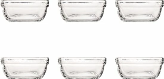Toetjes eet je voortaan uit deze vierkante Lys Carré schaaltjes van Duralex. Deze schalen zijn gemaakt van gehard glas en daardoor bestand tegen thermische schommelingen en schokken. De schalen zijn dus niet alleen vaatwasmachinebestendig, maar daarnaast ook magnetron- en vriezerbestendig. Nog een voordeel⦠de schalen zijn goed stapelbaar en zullen weinig ruimte innemen in je kast. De set bestaat uit 6 schalen met een afmeting van 11 x 11 cm. De inhoudsmaat van deze schalen is 30 cl.
