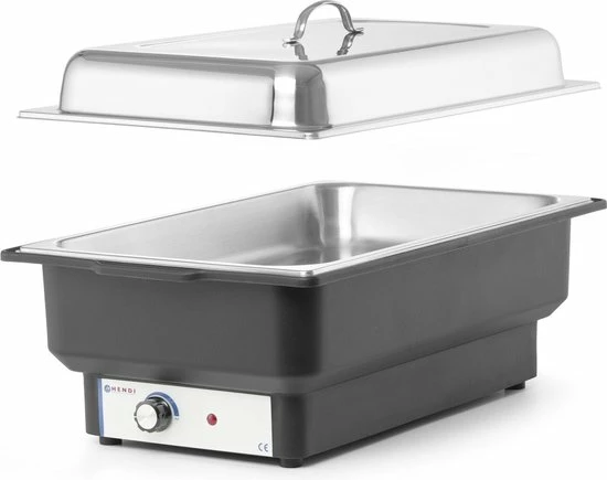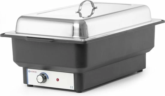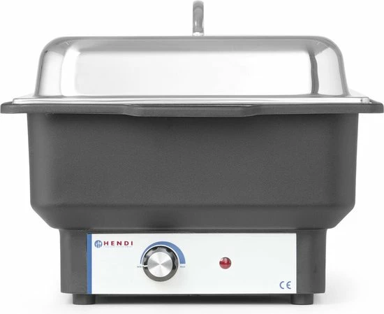 De elektrische chafing dish tellano van Hendi is perfect om al uw gerechten vers en warm te serveren op het buffet. Doormiddel van au bain marie blijft het eten langdurig warm. Perfect voor catering en buffetten. De hendi tellano chafing dish wordt compleet geleverd inclusief deksel en roestvast stalen voedselpan van 65mm diep.