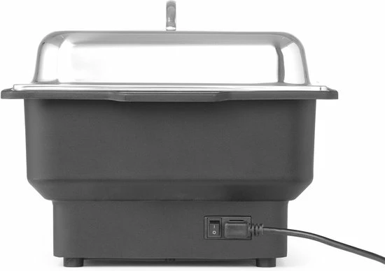 De elektrische chafing dish tellano van hendi heeft een kunststoffen water waterbak welke hittebestendig is en is voorzien van een warmte element. Met de traploos instelbare thermosstaat kunt u het water snel en eenvoudig verwarmen tot 85Β°C. De tellano wordt compleet geleverd inclusief rvs voedselpan van 65mm diep. Verder is de tellano chafing dish uitvoert met een aan-uit schakelaar en een eenvoudige bediening.