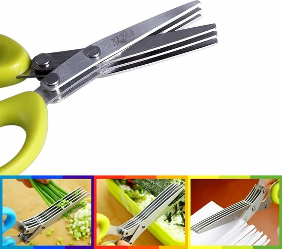 Deze kruidenschaar is de beste schaar voor in de keuken! Knip gemakkelijk alle soorten verse kruiden en geniet van het gemak. De kruidenschaar bevat 5 scherpe schaarbladen hierdoor is het super makkelijk om kruiden te knippen. De kruidenschaar is gemaakt van roestvrijstaal en de handgrepen zijn gemaakt van groen kunststof met een zachte siliconen afwerking voor extra comfort.