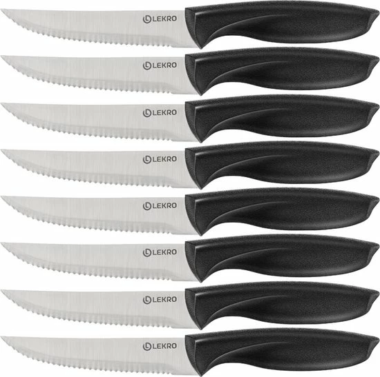 Maak je perfect gedekte tafel compleet met de Lekro Steakmessen. Een set van 8 topkwaliteit steakmessen met een uniek design. Verkrijgbaar in zwart of grijs. Ook leuk om cadeau te geven π