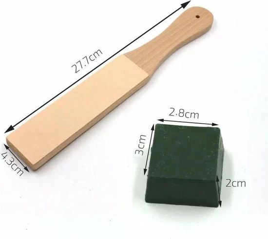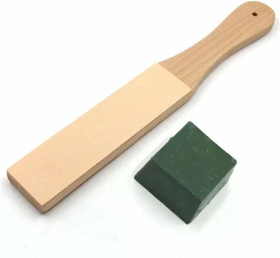 Om de strop te gebruiken haalt u het mes per zijde om en om drie keer langs het leer. U kunt stift op de snede aanbrengen om te zien of u de snede juist raakt. Voor de bottere messen is het handig om de compound op het leer aan te brengen door er met het blok overheen te wrijven. Het is vaak beter om één zijde compound vrij te houden zodat die voor het fijnere werk gebruikt kan blijven worden. Toch raden wij u aan om een korte video te kijken voor u aan de slag gaat. Succes!