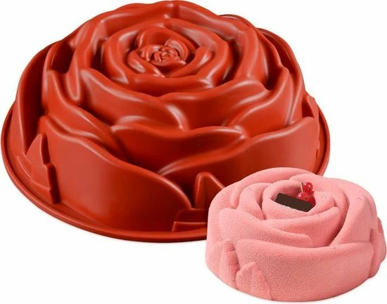 Prachtige bakvorm met rozenmotief welke gemakkelijk en snel te gebruiken is.