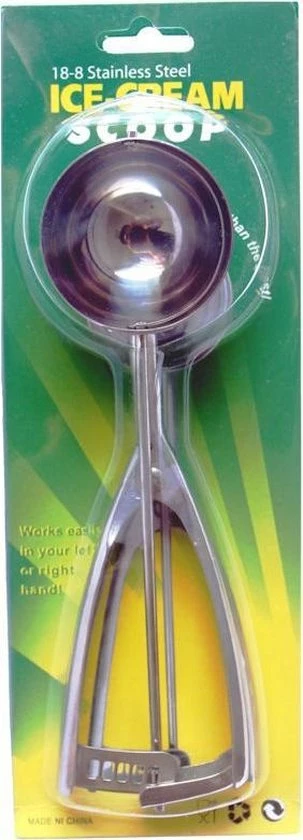 Professionele ijsschep gemaakt van roestvast staal. De schep heeft een diameter van maar liefst 6cm om mooie ronde professionele bollen ijs te scheppen. Door de schep in te knijpen wordt de bol uit de schep gedrukt.