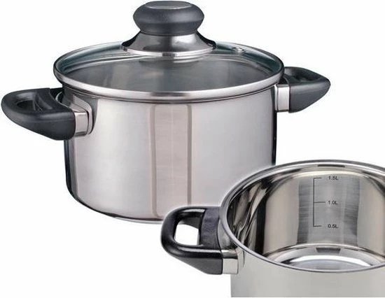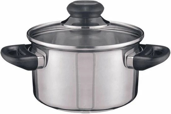 RVS kookpannetje / pan met glazen deksel 16 cm. Deze pan is gemaakt van RVS. De bodem van het pannetje bestaat uit 3 lagen voor optimaal gebruik van de warmte. De handgrepen hebben zijn vlambestendig. De glazen deksel is voorzien van een ventilatie gat en is warmtebestendig. De pan is zowel van binnen als van buiten glanzend gepolijst en geschikt voor keramisch, elektrisch, inductie en gas fornuizen. Vaatwasser bestendig. Diameter: ongeveer 16 cm en 9,5 cm hoog. Inhoud: ca 1,5 liter.