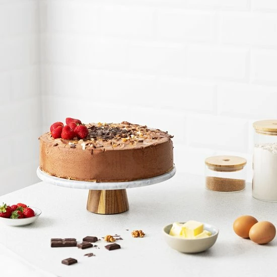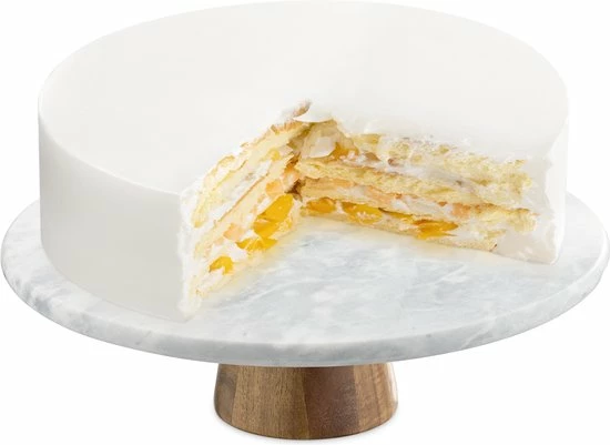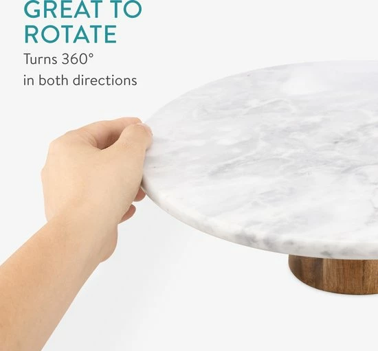 - KWALITEIT: Het taartplateau is gemaakt van hoogwaardig marmer en heeft een voet van stevig acaciahout.