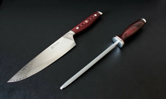 Dit aanzetstaal is gemaakt uit gehard RVS. Het ergonomische handvat is gemaakt van pakkahout en afgewerkt met het Paudin logo. Het metaal aan de onderkant van het handvat beschermd u tegen snijwonden tijdens het aanzetten. Wordt geleverd in een magnetisch sluitbare geschenkverpakking.