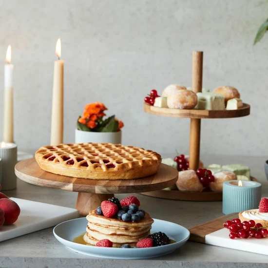 Deze taartplateau is ideaal om je favoriete gebak op te serveren. De taartschotel is gemaakt uit acaciahout en dient met de hand afgewassen te worden.