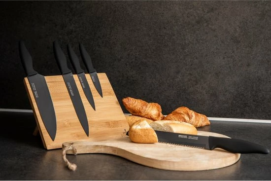 Wanneer je de messen in een la met andere messen of materialen zoekt, is de kans op snijwonden een stuk groter. Een magnetisch blok is hier de oplossing voor. Het hele blok is magnetisch waardoor de messen ten alle tijden goed zullen blijven hangen. Daarbij zijn de messen afgewerkt met antislip en een zachte afwerking, waardoor de messen fijn en veilig in de hand zullen liggen.