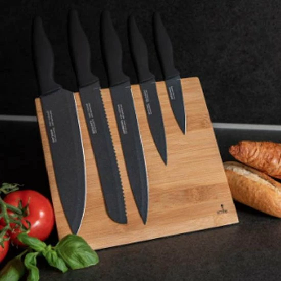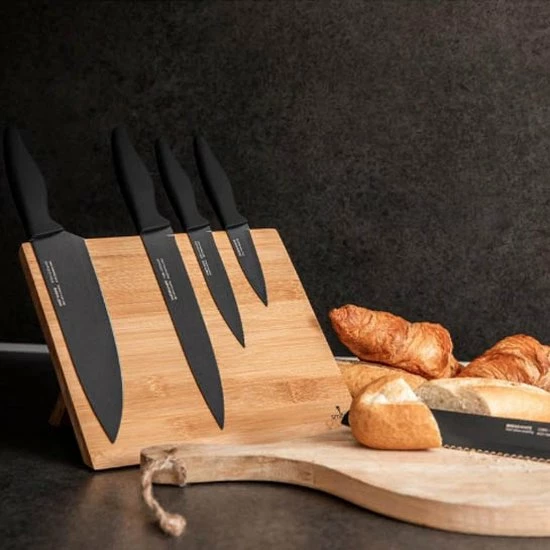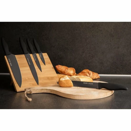 Dit prachtige messenblok is ideaal voor in uw keuken. Doordat alle messen keurig opgeborgen worden op het magnetische bamboe blok, kent het niet alleen een modern design, het is ook super functioneel. De geprofileerde messen zijn gemaakt van hoogwaardig roestvrijstaal.