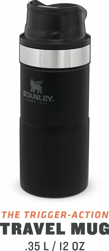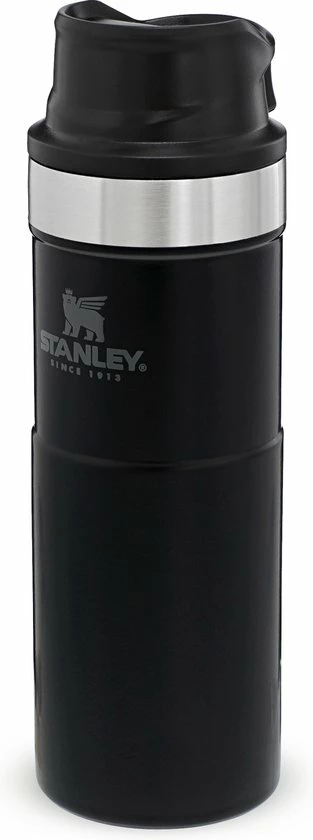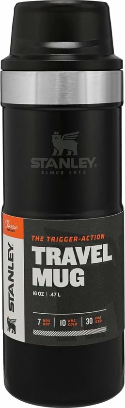 Stanley Classic Trigger Action Travel Mug 0.47L / 16OZ Matt Black β Lekvrij | VacuΓΌm geΓ―soleerde thee en koffie reismok | Roestvrijstalen thermosbeker houdt 7 uur warm | BPA-vrij | Vaatwasserbestendig