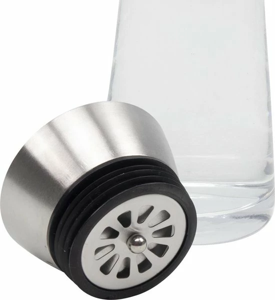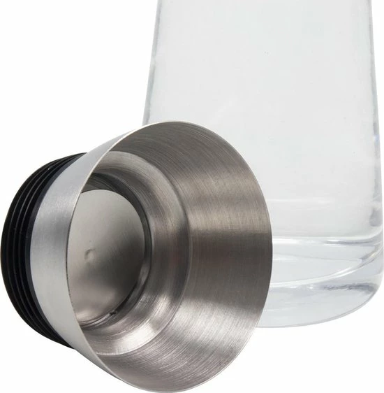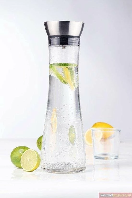 De glazen waterkaraf is daarmee niet alleen praktisch, het ziet er ook nog leuk uit op de tafel.