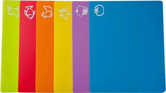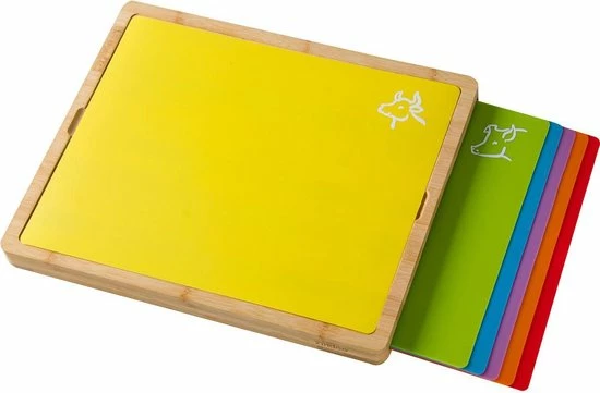 - HYGIΓNISCH: Door de 6 verschillende snijplanken heb je er één voor elk voedseltype. Zo houd je de etenswaren van elkaar gescheiden voor optimale hygiΓ«ne. Bamboe is daarnaast waterbestendig en gemakkelijk schoon te krijgen. Ideaal voor in de keuken!